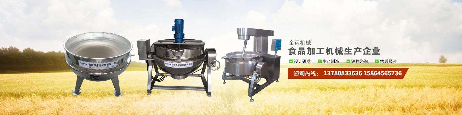 主要產(chǎn)品有:行星攪拌夾層鍋、夾層鍋、壓力煮鍋、各種餡料炒鍋、殺菌鍋(殺菌釜)、巴氏殺菌機、清洗流水線、風干線、真空包裝機、滾揉機、斬拌機、鹽水注射機、大蒜脫皮機、大蒜分瓣機等,廣泛應用于各種食品加工、食品殺菌及農(nóng)產(chǎn)品深加工、化工、醫(yī)藥的生產(chǎn)等??蓾M足外資企業(yè)、合資企業(yè)及國內(nèi)大中小企業(yè)生產(chǎn)需求,產(chǎn)品暢銷全國各地。